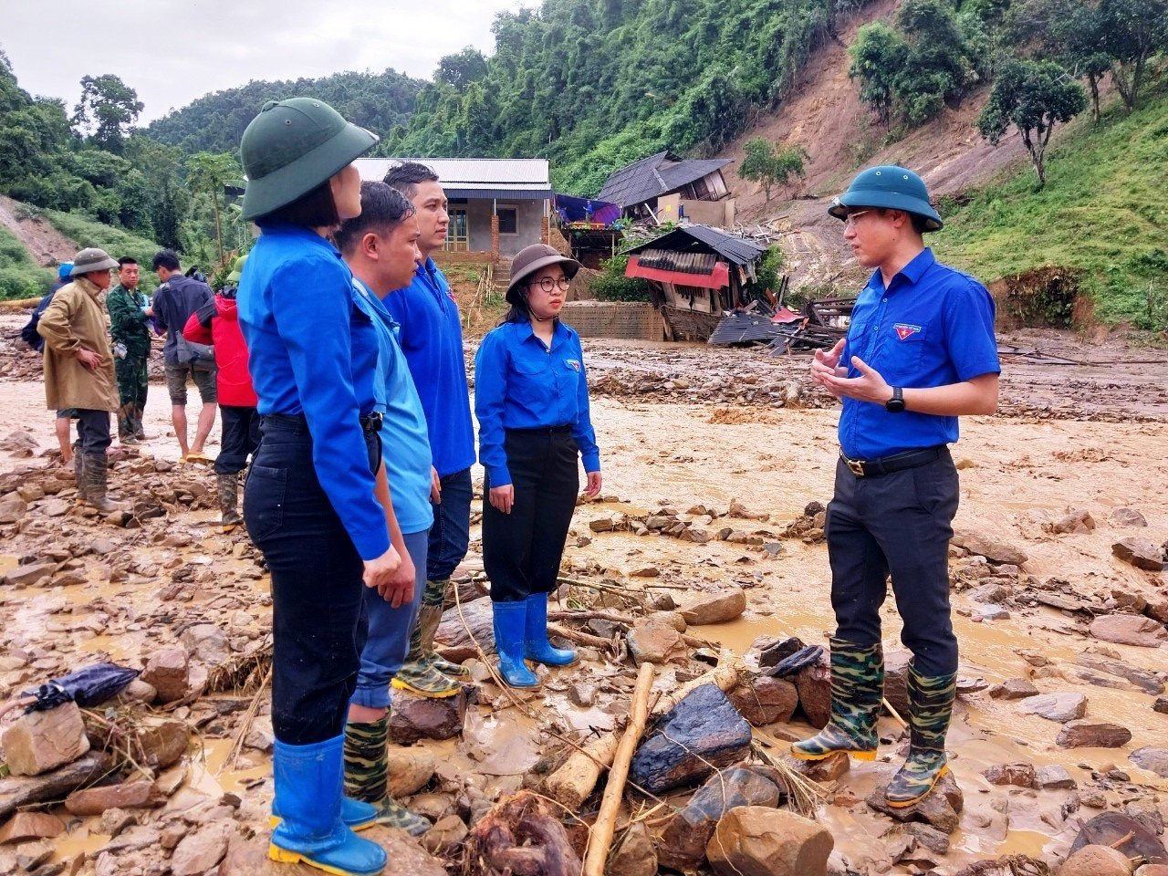 Đồng chí Đặng Thành Huy, Bí thư Tỉnh đoàn Điện Biên chỉ đạo lực lượng đoàn viên tại địa phương khắc phục hậu quả do mưa lũ tại xã Mường Pồn.