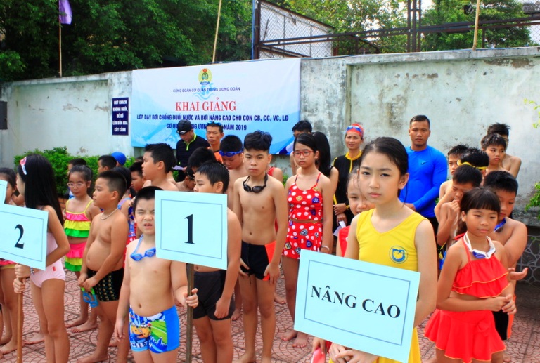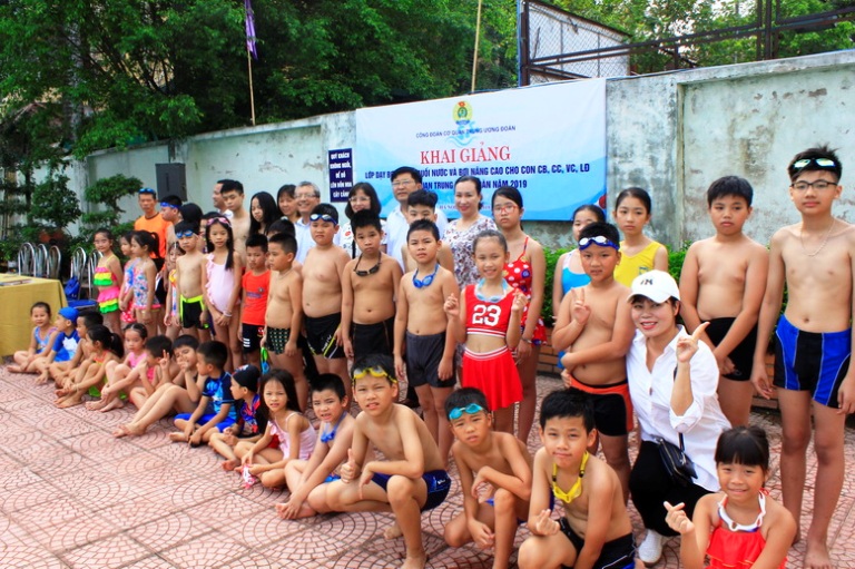 Một số hình ảnh Khai giảng Lớp dạy bơi chống đuối nước cho con cán bộ Trung ương Đoàn: