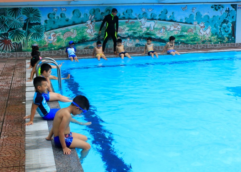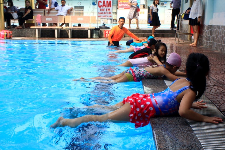 Lớp dạy bơi chống đuối nước diễn ra trong 10 ngày, từ 03-12/7/2019 với 05 lớp do các giáo viên có đẳng cấp huấn luyện