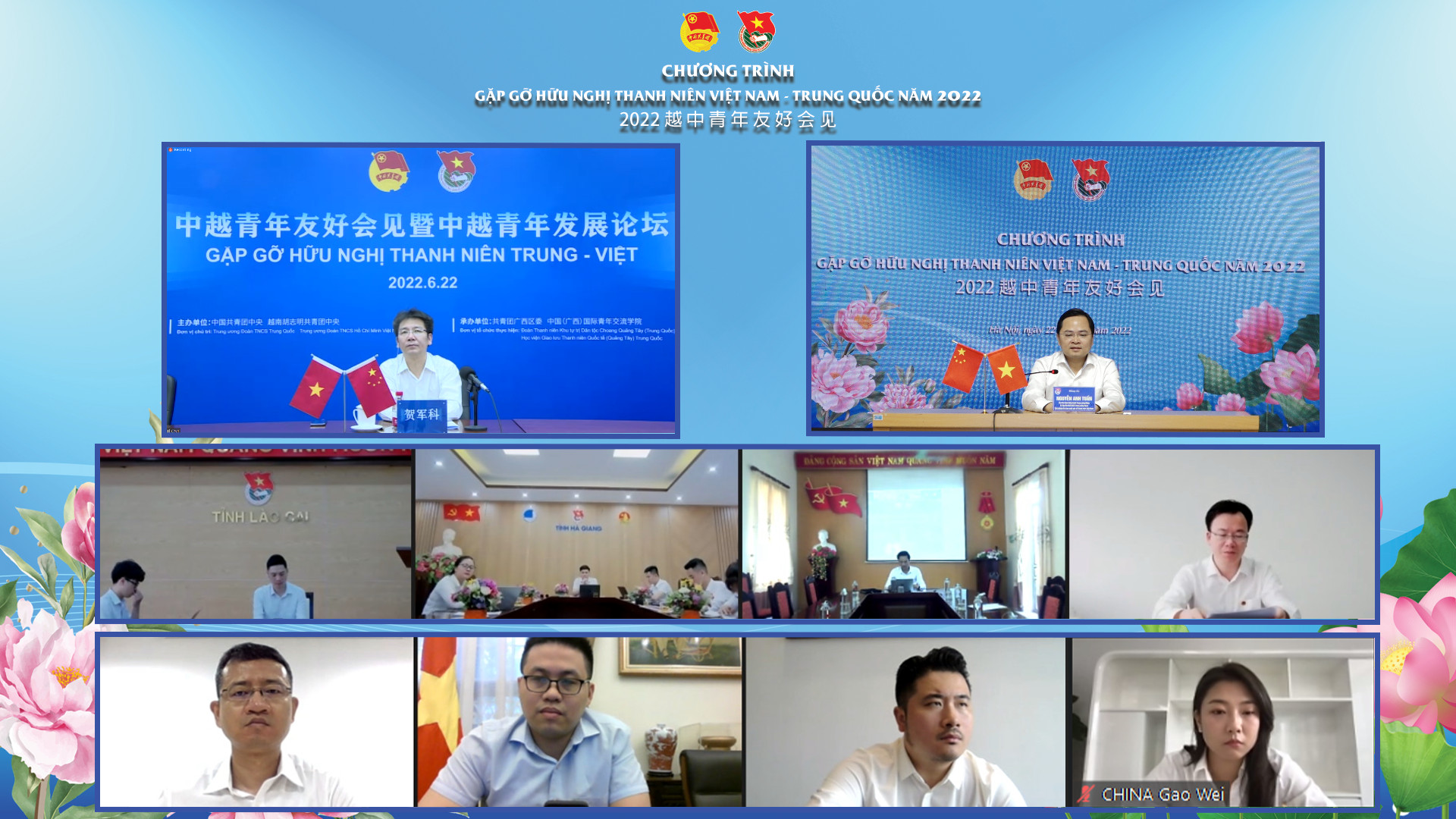ĐTN: Ngày 22/6, Lễ Khai mạc Chương trình Giao lưu Hữu nghị Thanh niên Việt Nam – Trung Quốc 2022 được tổ chức theo hình thức trực tuyến.