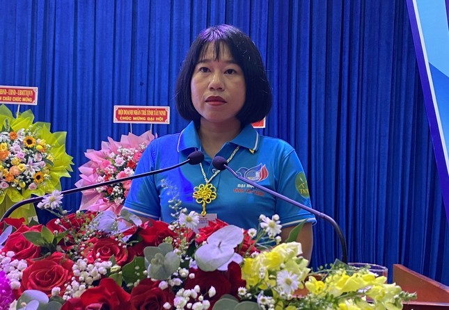Đồng chí Nguyễn Thị Trúc Mai, Phó Bí thư thường trực Tỉnh đoàn, Chủ tịch Hội LHTN Việt Nam tỉnh Tây Ninh khóa VII phát biểu tại đại hội