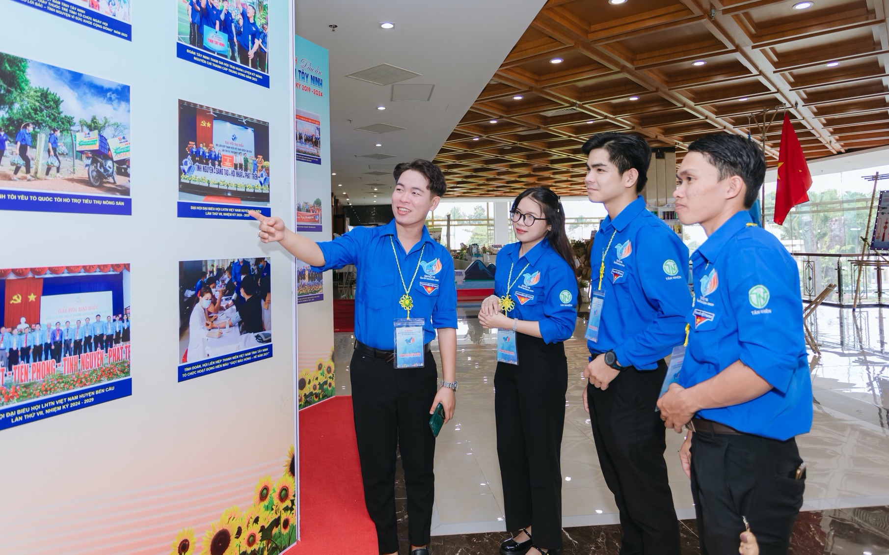 Lãnh đạo Tỉnh đoàn Tây Ninh và lãnh đạo Hội Doanh nghiệp trẻ Tây Ninh chụp ảnh lưu niệm tại gian trưng bày của đại hội