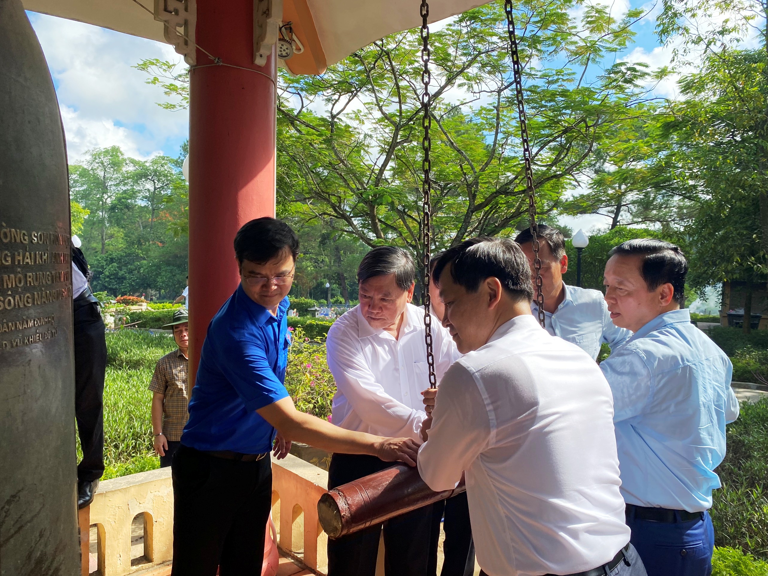 Các đồng chí lãnh đạo làm Lễ thỉnh chuông Nghĩa trang liệt sỹ Quốc gia Đường 9