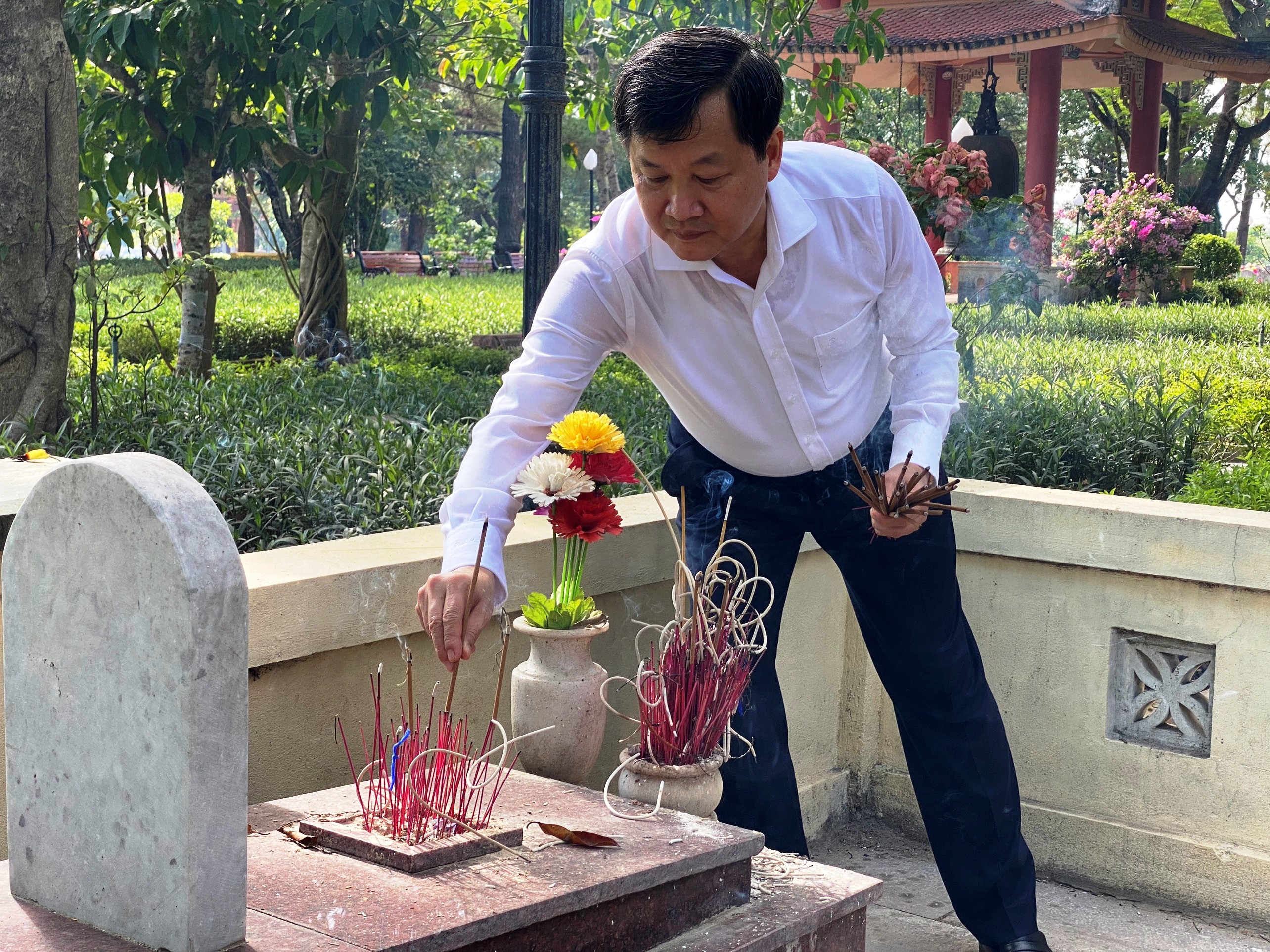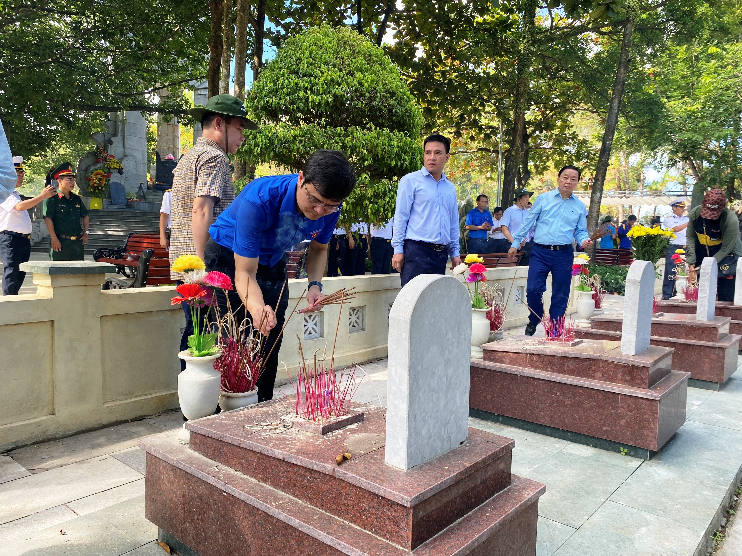 Phó Thủ tướng Chính phủ Lê Minh Khái và Bí thư thường trực T.Ư Đoàn Bùi Quang Huy dâng hương các phần mộ tại Nghĩa trang liệt sỹ Quốc gia Trường Sơn