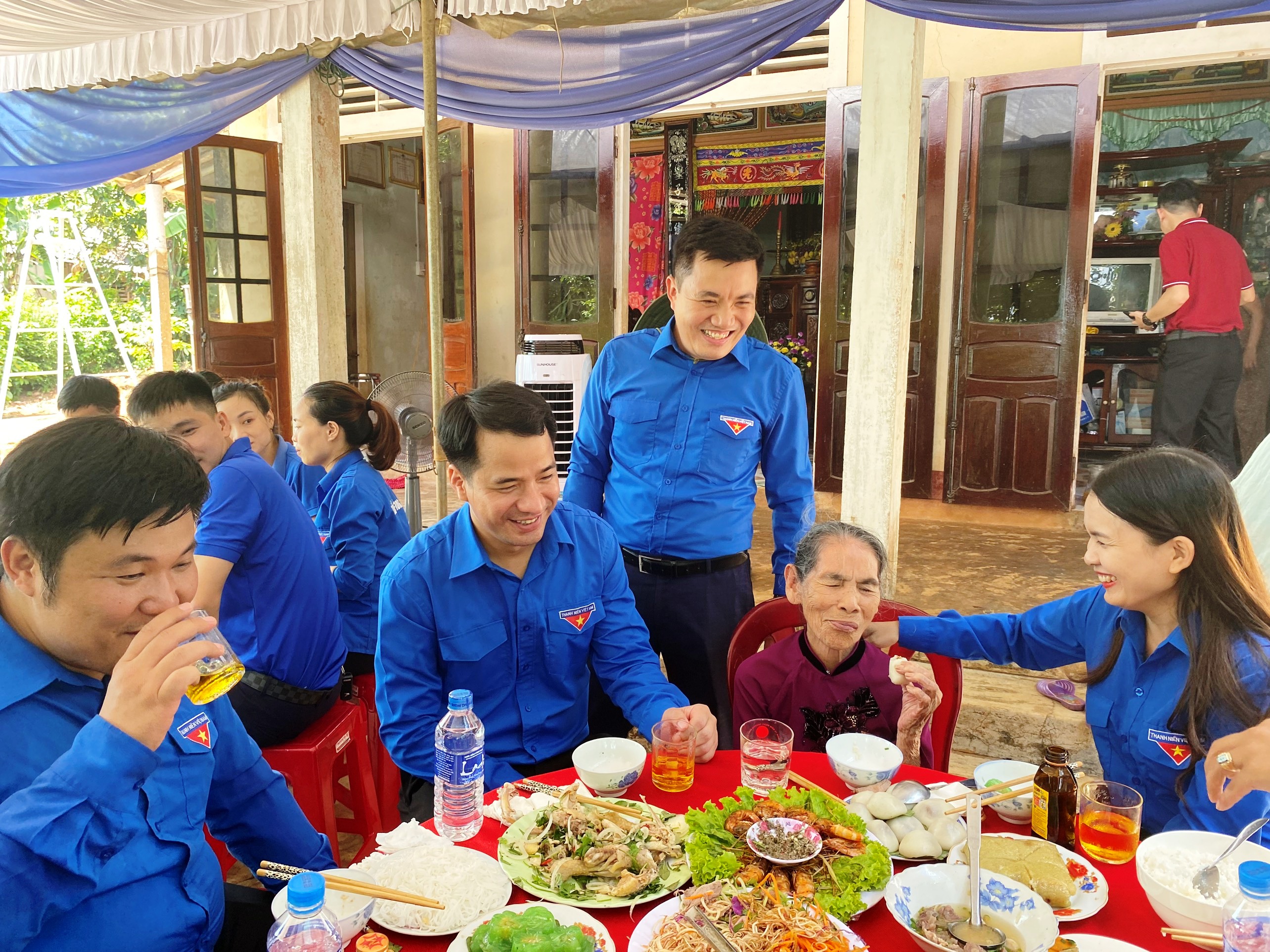 Sau lễ thắp hương ở Nghĩa trang liệt sỹ Quốc gia Trường Sơn, Đoàn công tác do đồng chí Ngô Văn Cương- Bí thư Trung ương Đoàn đã đến thăm, tặng quà và dự “Bữa cơm gia đình - Ấm tình lòng mẹ” tại nhà Mẹ Việt Nam anh hùng Nguyễn Thị Nậy- 93 tuổi, Mẹ có chồng và 2 con là Liệt sỹ hi sinh trong kháng chiến chống Mỹ cứu nước tại thôn Gia Môn xã Phong Bình huyện Gio Linh tỉnh Quảng Trị.