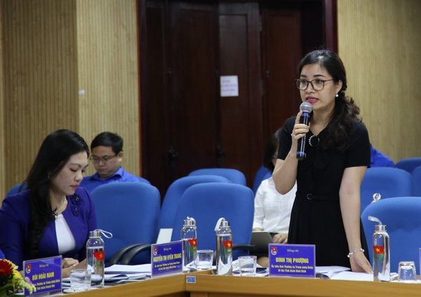 Chị Đinh Thị Phượng, Bí thư Tỉnh Đoàn Ninh Bình phát biểu tại Hội nghị