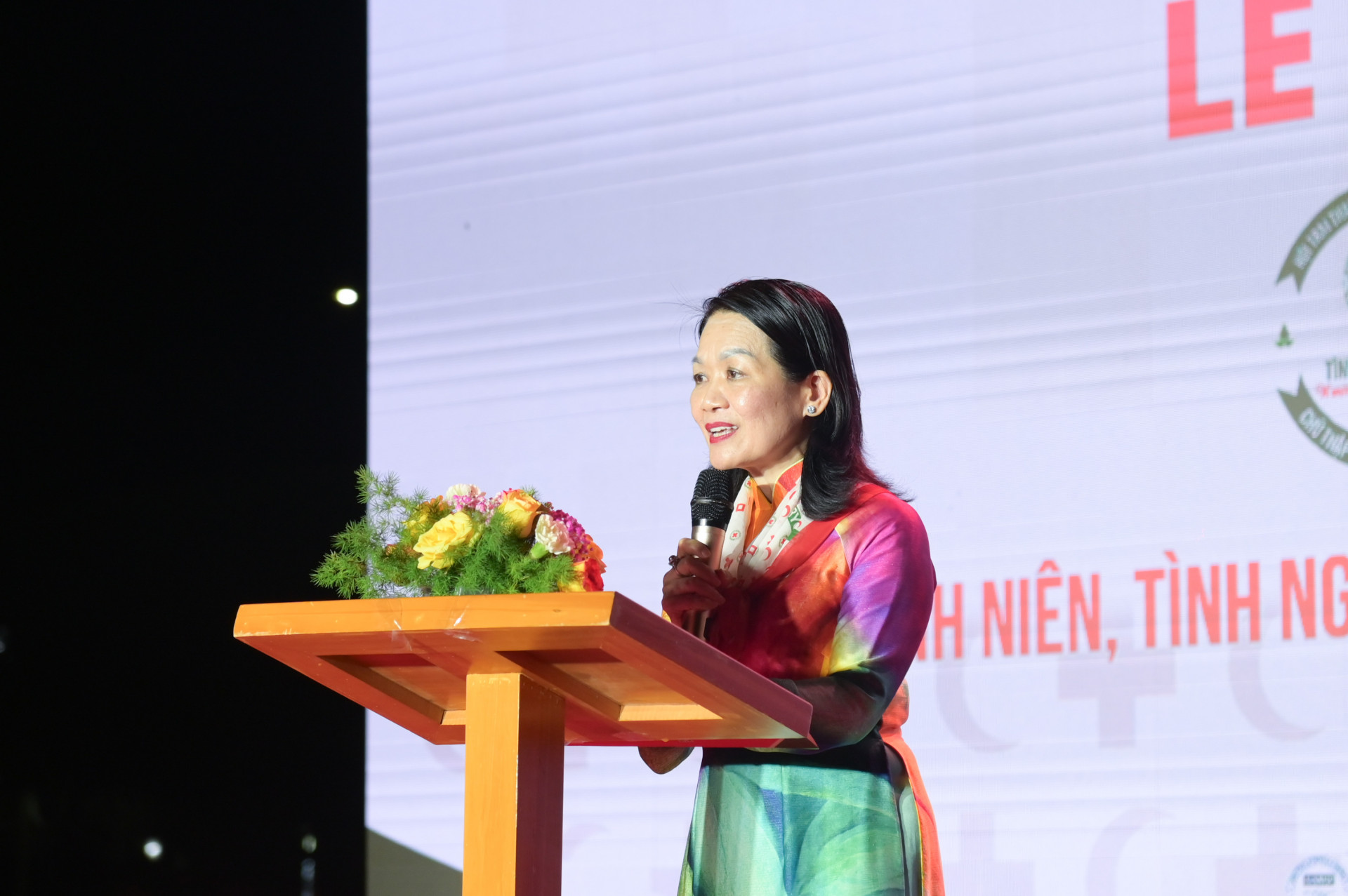 Đồng chí Bùi Thị Hòa, Chủ tịch Trung ương Hội Chữ Thập đỏ Việt Nam phát biểu khai mạc Hội trại