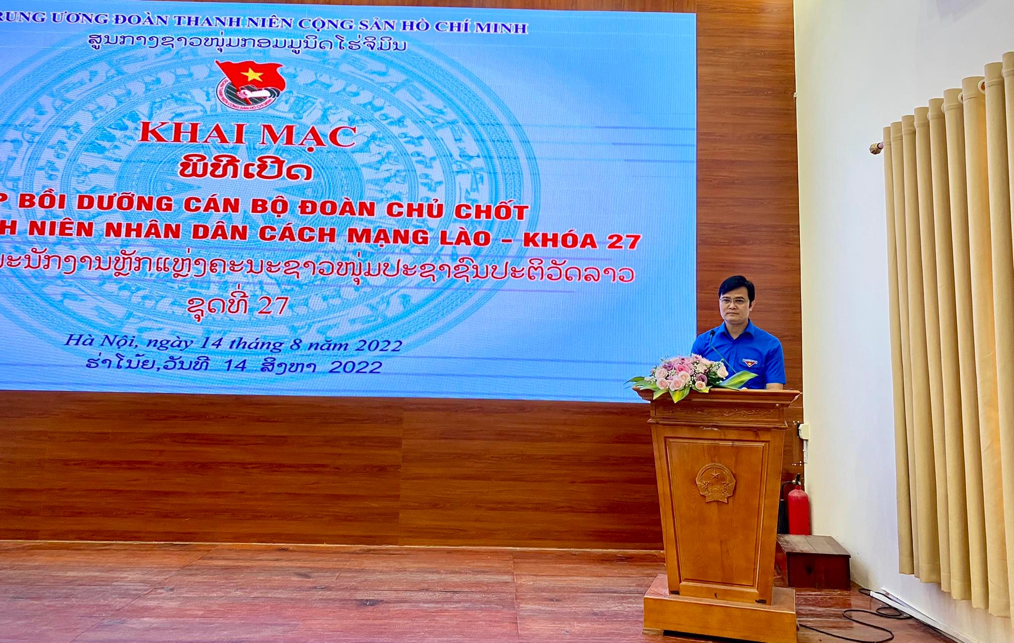 Lớp bồi dưỡng cán bộ chủ chốt Đoàn TNNDCM Lào khóa 27 diễn ra từ ngày 13/8 đến ngày 10/9/2022, các học viên sẽ tham gia tìm hiểu, trao đổi nhiều chuyên đề như: Đường lối phát triển kinh tế xã hội của Đảng Cộng sản Việt Nam; học tiếng Việt; khái quát hệ thống chính trị ở Việt Nam; tư tưởng Hồ Chí Minh về giáo dục, bồi dưỡng thế hệ trẻ và quan điểm của Đảng Cộng sản Việt Nam về Thanh niên; công tác tổ chức xây dựng Đoàn và kiểm tra, giám sát của Đoàn TNCS Hồ Chí Minh.