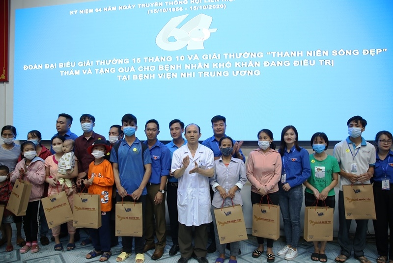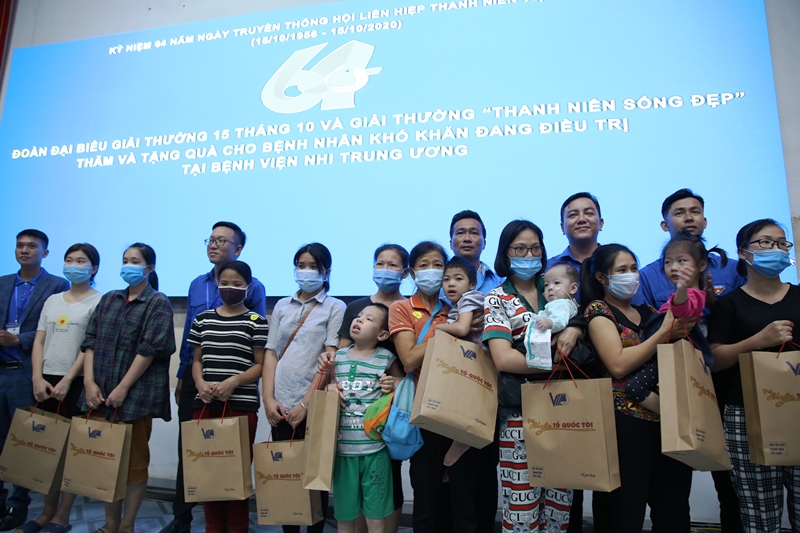 Bên cạnh đó, các đại biểu được tuyên dương Giải thưởng 15/10 và Gương Thanh niên sống đẹp đã đến thăm và tặng quà cho bệnh nhi tại Bệnh viện Nhi Trung ương và Viện Huyết học truyền máu Trung ương.
