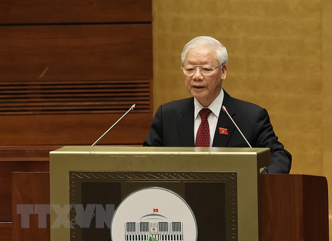 Tiếp đó, Tổng Bí thư Ban Chấp hành Trung ương Đảng Cộng sản Việt Nam Nguyễn Phú Trọng có bài phát biểu quan trọng trước Quốc hội.
