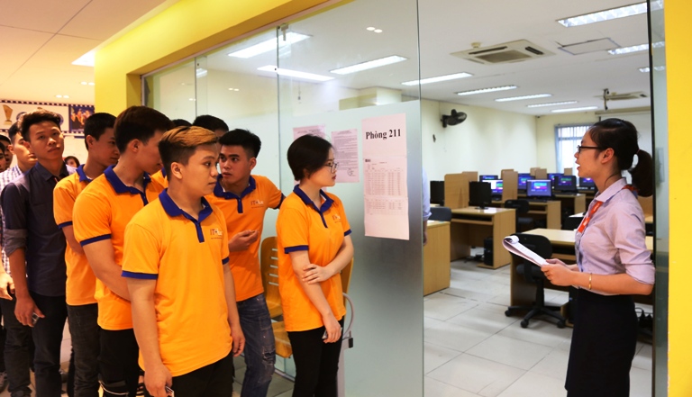 Thí sinh xếp hàng làm thủ tục vào phòng thi
