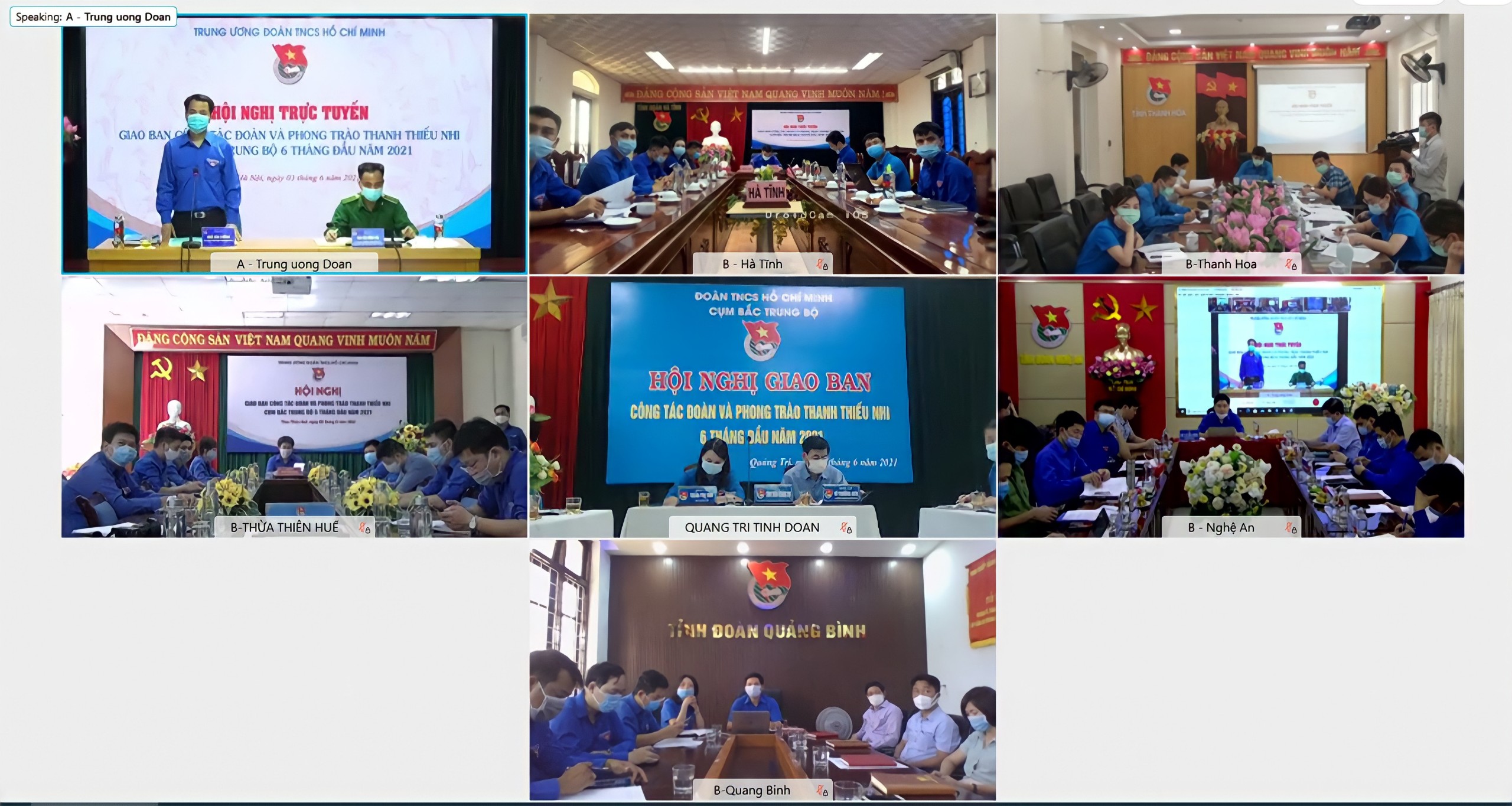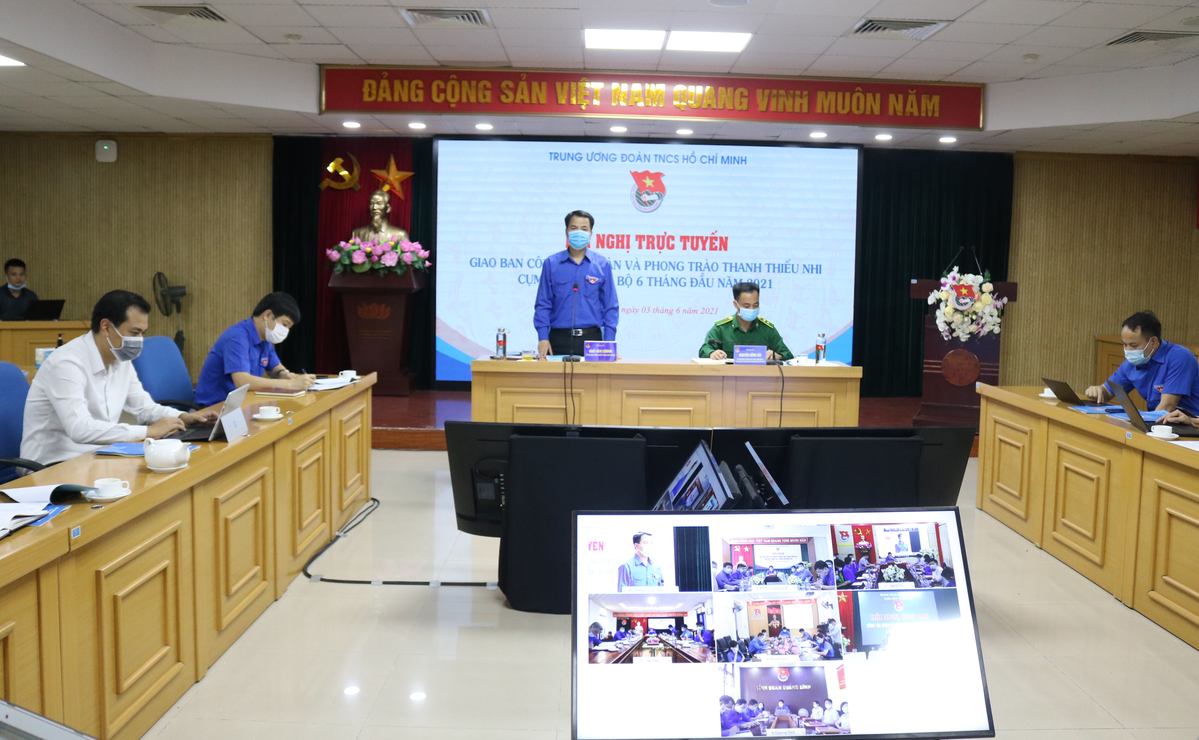 Ngày 3/6, T.Ư Đoàn tổ chức hội nghị giao ban trực tuyến sơ kết công tác đoàn và phong trào thanh thiếu nhi 6 tháng đầu năm 2021 Cụm Bắc Trung bộ với sự tham dự của đại diện 6 tỉnh đoàn trong cụm: Hà Tĩnh, Nghệ An, Quảng Bình, Quảng Trị, Thanh Hóa và Thừa Thiên Huế. Đồng chí Ngô Văn Cương, Bí thư T.Ư Đoàn; đồng chí Nguyễn Hồng Hải, Ủy viên BTV, Trưởng Ban TNXP .TƯ Đoàn chủ trì Hội nghị tại đầu cầu Hà Nội.