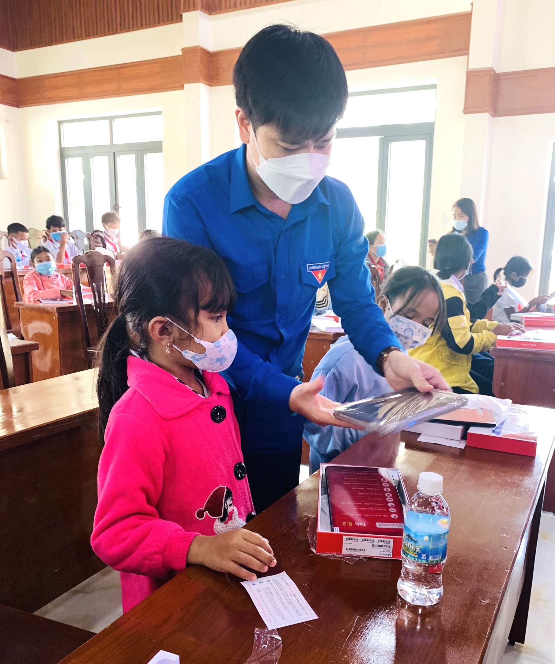 Học sinh Khánh Sơn vui mừng khi được nhận máy tính bảng hỗ trợ việc học trong điều kiện dịch Covid-19 còn nhiều diễn biến phức tạp