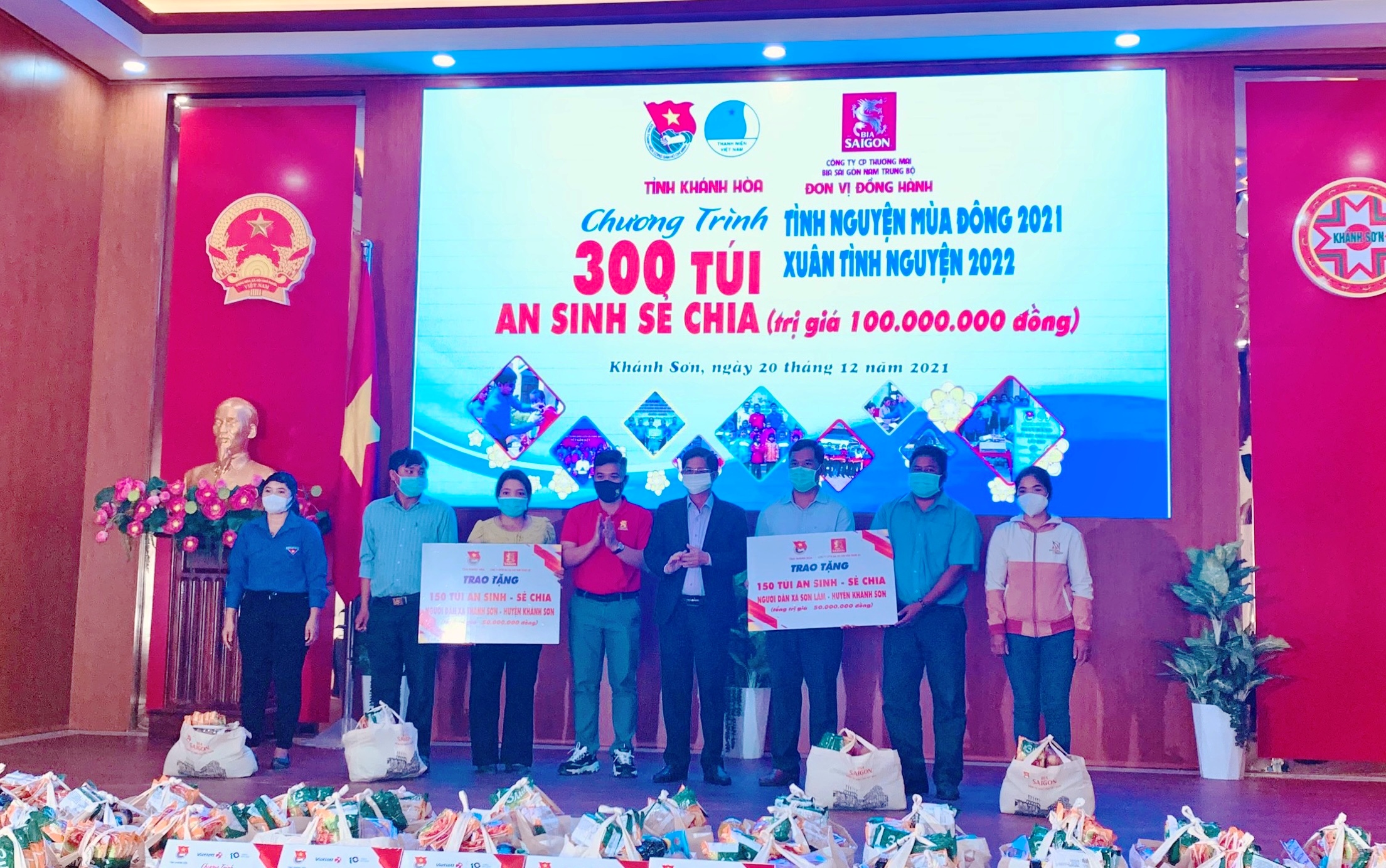 Chương trình “Túi An sinh - sẻ chia” hỗ trợ người dân có hoàn cảnh khó khăn bị ảnh hưởng bởi dịch bệnh Covid-19: Công ty Cổ phần Thương mại Bia Sài Gòn Nam Trung bộ và Đoàn khối các cơ quan tỉnh hỗ trợ 300 túi an sinh trị giá 100 triệu đồng.