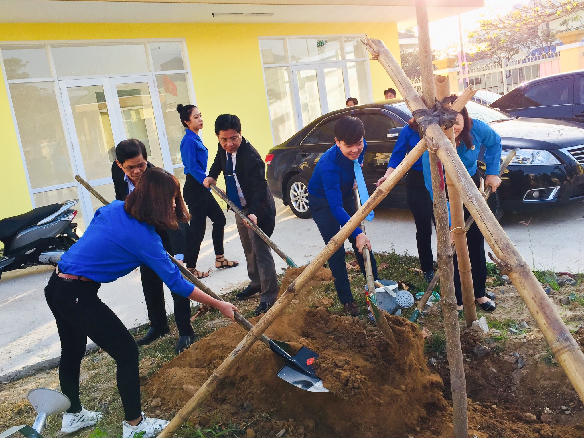 Các đồng chí lãnh đạo và các bạn đoàn viên thanh niên hưởng ứng Tết trồng cây