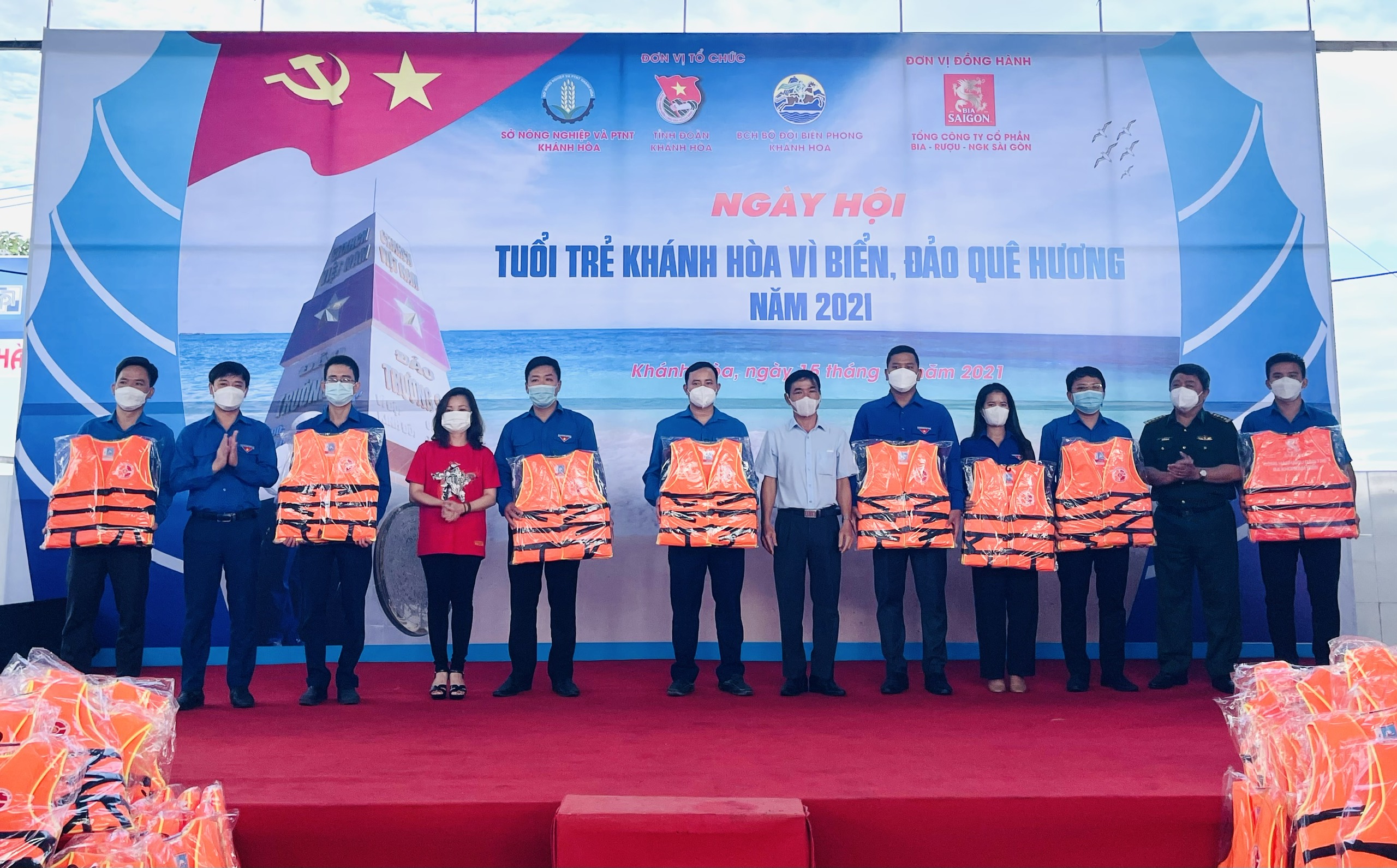 Chương trình Ngày hội “Tuổi trẻ Khánh Hòa vì biển, đảo quê hương” năm 2021 có sự đồng hành của đơn vị: Tổng Công ty CP Bia – Rượu - NGK Sài Gòn (SABECO) và Công ty Cổ phần Thương mại Bia Sài Gòn Nha Trung bộ đã thực hiện trao tặng các phần quà có tổng giá trị 600 triệu đồng, gồm: Trao tặng 1.000 áo phao cho các huyện, thị, thành đoàn hỗ trợ ngư dân trẻ ra khơi bám biển và phục vụ hoạt động công tác tìm kiếm cứu nạn, ứng phó chống biến đổi khí hậu; Thực hiện hỗ trợ 40 bộ thiết bị giám sát hành trình cho tàu cá dành cho ngư dân theo nghị định số 26/2019/NĐ-CP của Chính phủ: gồm Huyện Vạn Ninh: 10 thiết bị, Thành phố Nha Trang: 24 thiết bị và Thành phố Cam Ranh: 06 thiết bị.