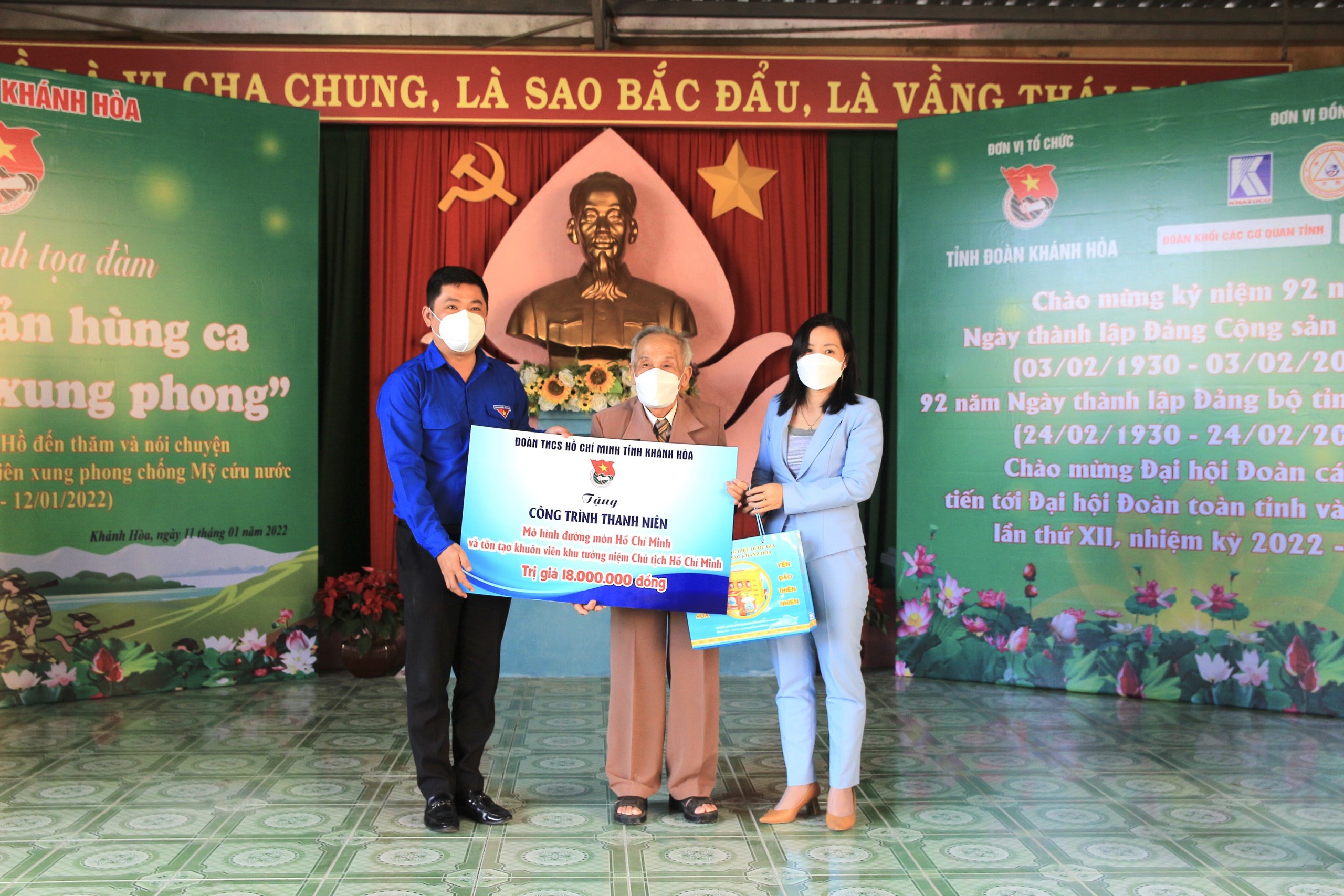 Tri ân những đóng góp của các cô, chú cựu thanh niên xung phong thời kỳ kháng chiến chống Mỹ cứu nước, Tỉnh đoàn đã tặng 10 suất quà (1.200.000 đồng/suất) cho 10 cựu thanh niên xung phong có hoàn cảnh khó khăn đến từ 8 huyện, thị xã, thành phố trong tỉnh; trao 5 học bổng (1.000.000 đồng/suất) cho 5 học sinh là con em gia đình chính sách, vượt khó học giỏi; đồng thời trao tặng 01 công trình thanh niên trị giá 18 triệu đồng cho gia đình Bác Bùi Xuân Phước – người đã trực tiếp xây dựng Khu tưởng niệm, sưu tập và gìn giữ những giá trị về Bác Hồ cho thế hệ trẻ Khánh Hòa hôm nay.