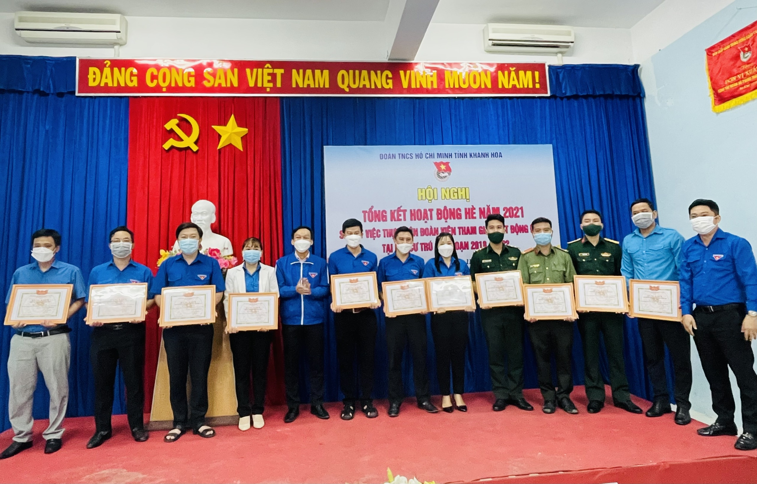 Thường trực Tỉnh đoàn tặng bằng khen cho các tập thể có thành tích xuất sắc trong chiến dịch Thanh niên tình nguyện hè năm 2021