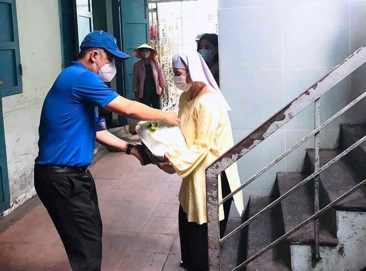 Bí thư Thành đoàn Nha Trang trao quà cho người dân thuê trọ tại xã Vĩnh Hiệp