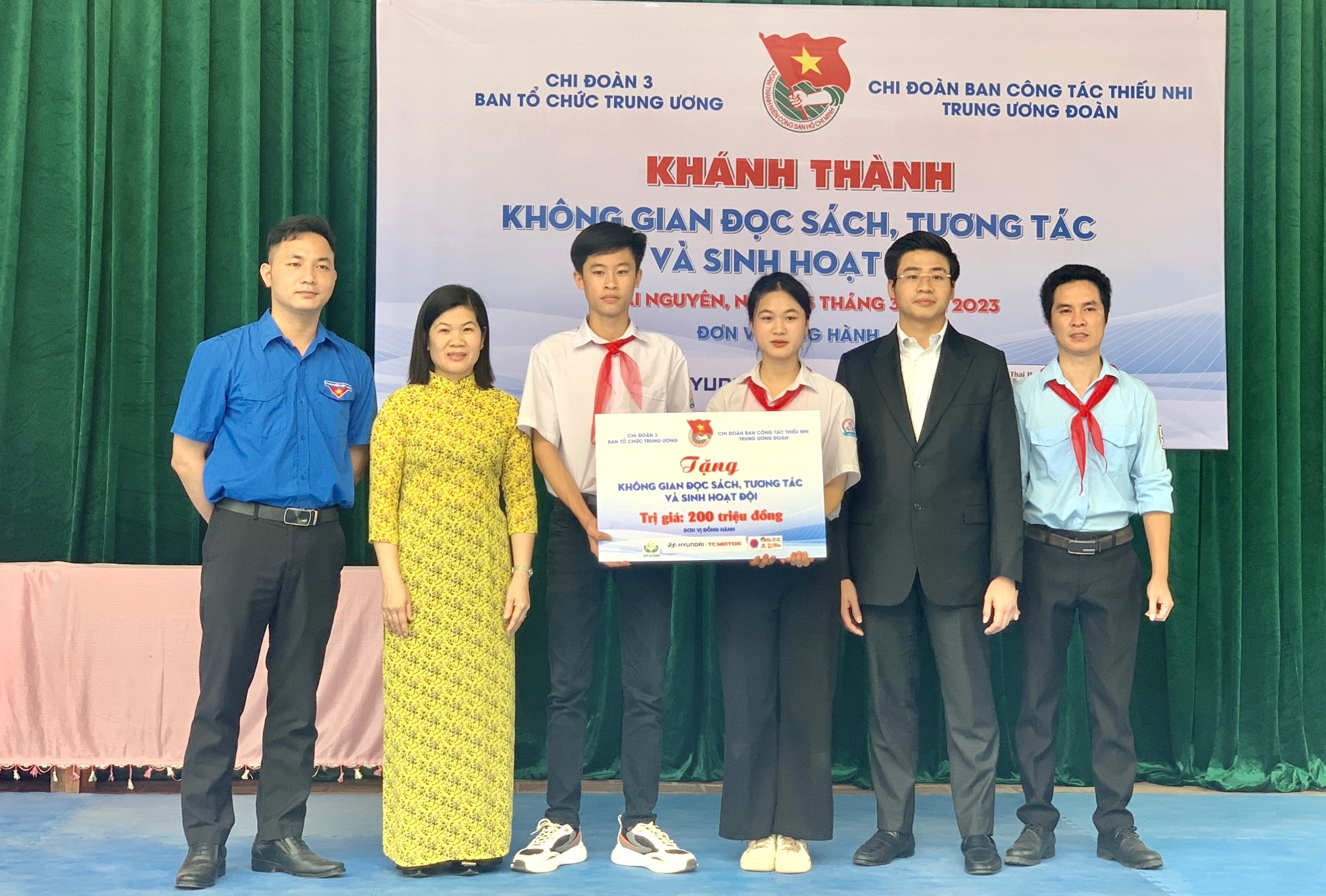 Theo đó, Chi đoàn 3, Ban Tổ chức Trung ương phối hợp với Chi đoàn Ban Công tác Thiếu nhi Trung ương Đoàn cùng với đơn vị đồng hành là Tập đoàn Hyundai Thành Công Việt Nam, Công ty TNHH Thái Hải, Quỹ từ thiện Lá xanh đã trao tặng công trình “Không gian đọc sách, tương tác và sinh hoạt Đội” đến các em học sinh Trường PTDTBT THCS Văn Lăng nhằm giúp các em có được không gian sinh hoạt, học tập để trao đổi, tìm kiếm tri thức qua những trang sách, đặc biệt sau những giờ học căng thẳng.
