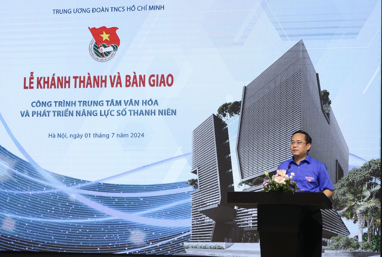 Phát biểu tại buổi lễ, đồng chí Bùi Quang Huy, Bí thư thứ nhất TƯ Đoàn đánh giá Trung tâm văn hóa và phát triển năng lực số thanh niên là công trình rất khang trang, hiện đại, được hoàn thành đúng theo thiết kế, đảm bảo chất lượng và vượt tiến độ 7 tháng.