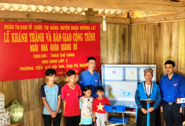 Web.ĐTN: Sáng 14/6, Đoàn Thanh niên Ban Tổ chức Trung ương Đảng phối hợp với Huyện đoàn Mường Lát tổ chức Lễ khánh thành ngôi nhà “Khăn quàng đỏ” cho em Thao Chí Công, học sinh lớp 2, Khu Pù Ngùa, trường tiểu học Pù Nhi.