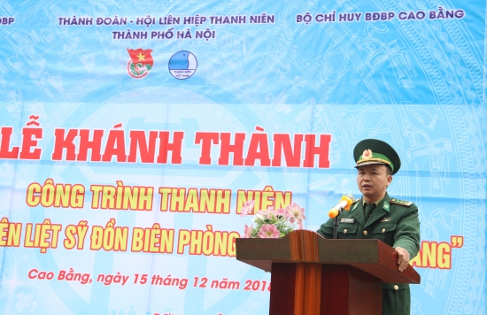Phát biểu tại buổi lễ, Thượng tá Đặng Hồng Quân, Phó Chính ủy BĐBP Cao Bằng nhấn mạnh, đây là công trình thể hiện sự tri ân của Cục Chính trị BĐBP, cán bộ, chiến sĩ BĐBP Cao Bằng cũng như các cơ quan, đơn vị, các cá nhân đối với sự hy sinh cao cả của các liệt sỹ Đồn biên phòng cửa khẩu Sóc Giang trong sự nghiệp bảo vệ Tổ quốc.