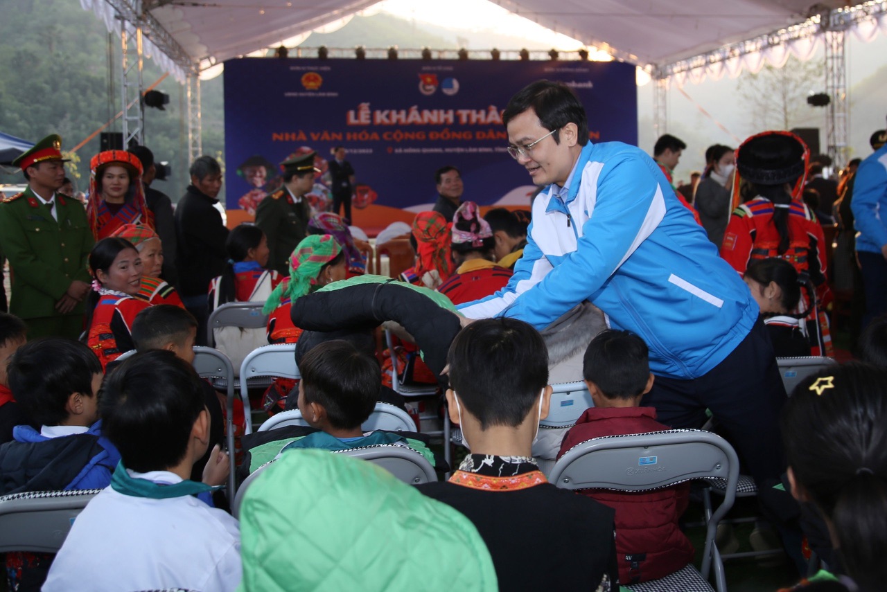 Bí thư thứ nhất T.Ư Đoàn Bùi Quang Huy tặng áo ấm cho các em thiếu nhi