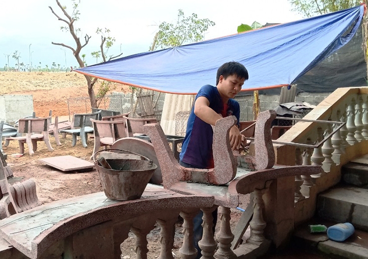 Mô hình sản xuất ghế đá mang lại thu nhập ổn định cho anh Hoàng Trung Thành sau khi xuất ngũ