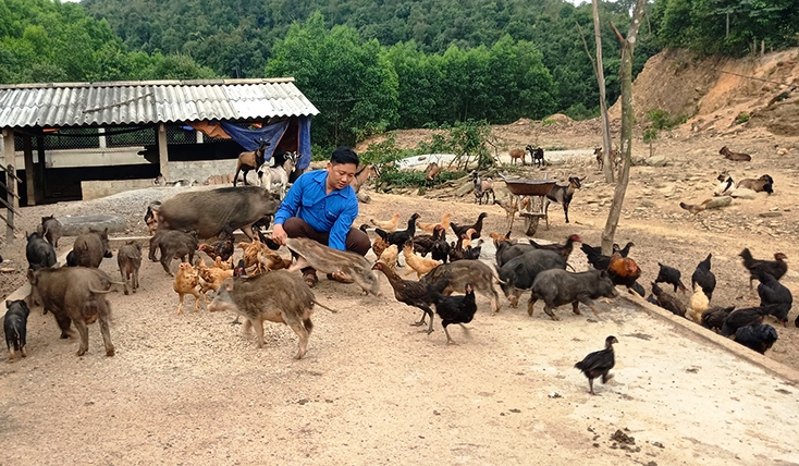 Cùng với việc trồng rừng, anh đã dùng 1,5ha đất để nuôi gà bản địa, ngan, lợn rừng lai và dê. Tất cả các vật nuôi được thực hiện theo hình thức thả vườn, vì vậy, đàn vật nuôi luôn phát triển tốt, cho năng suất và chất lượng thịt cao, được thị trường là các nhà hàng, khách sạn khu vực thị trấn Phong Nha ưa chuộng. Sau 5 năm khởi nghiệp, đến nay, trang trại của anh luôn duy trì đàn gà, ngan khoảng 500 con, đàn lợn 100 con và đàn dê 50 con.