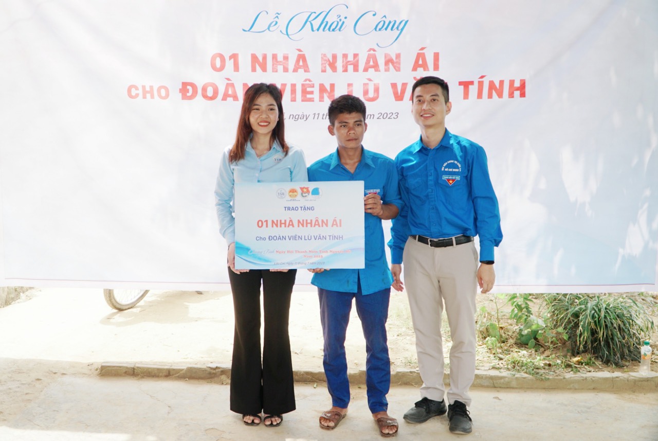 Công trình “Nhà nhân ái” được khởi công và trao tặng cho đoàn viên Lù Văn Tính, dân tộc Xá Phó, có hoàn cảnh đặc biệt khó khăn, là hộ nghèo, gia đình chủ yếu làm nông nghiệp. Trị giá trao tặng 50 triệu đồng hỗ trợ gia đình xây nhà mới, ổn định cuộc sống (kinh phí do Trung tâm Công tác Xã hội Thanh thiếu niên tài trợ).