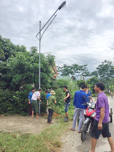 Tuyến đường có chiều dài 1.200m, với 37 cột đèn điện được lựa chọn thực hiện tại thôn Lâm Tiến, xã Minh Dân. Trong ngày đầu triển khai, ĐVTN và nhân dân trong thôn đã thực hiện các phần việc đào hố, lắp bóng đèn, chao đèn, dựng cột và đổ bê tông chân cột đèn.