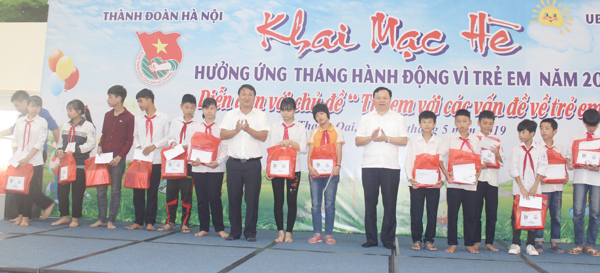 Tại chương trình, Đoàn Thanh niên, Hội đồng Đội Thành phố trao tặng 1 sân chơi cho thiếu nhi huyện Thanh Oai với tổng trị giá 50 triệu đồng; tặng học bổng cùng nhiều phần quà cho 55 thiếu nhi có hoàn cảnh khó khăn vươn lên học tốt.
