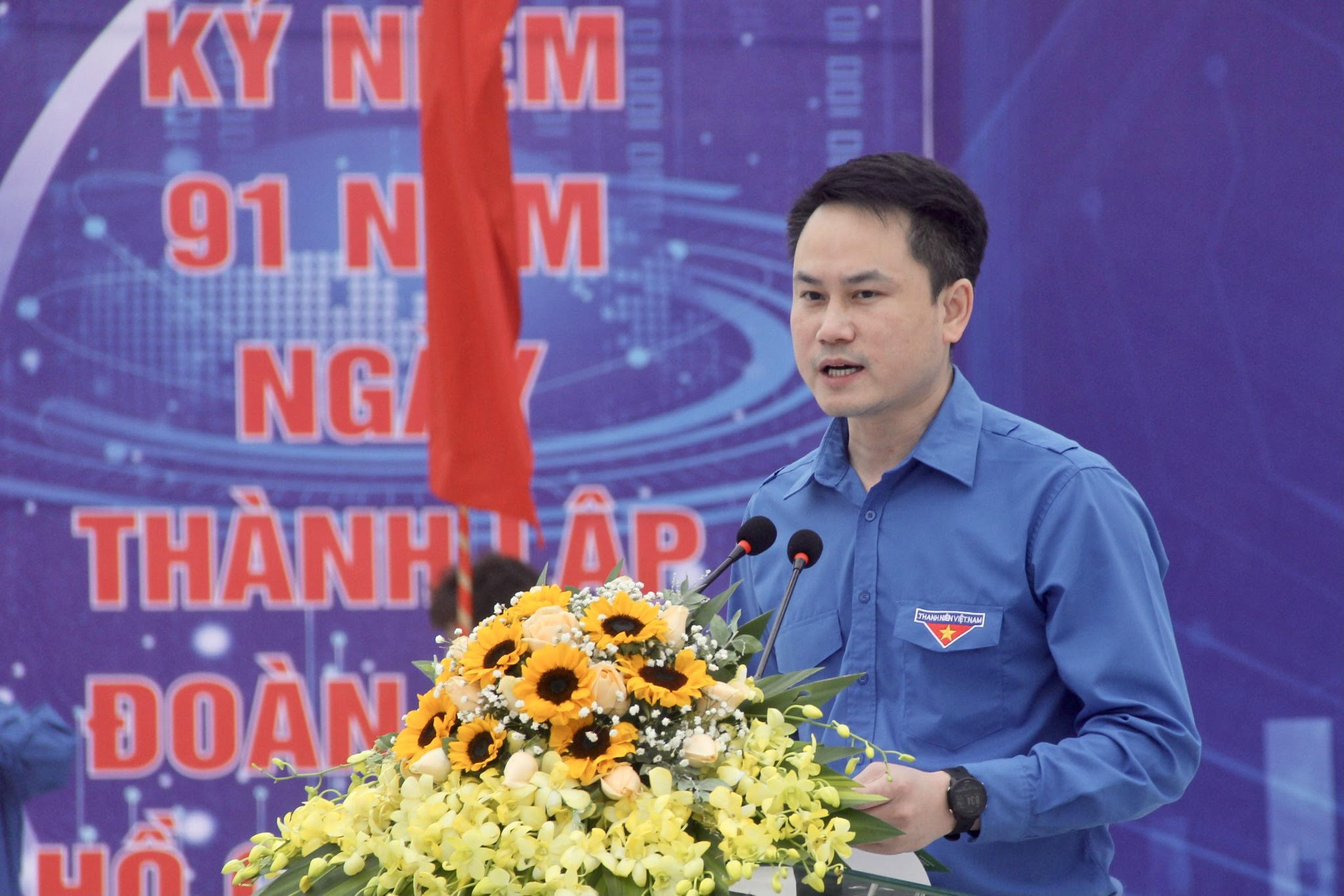 Đồng chí Nguyễn Kim Quy, Bí thư Tỉnh Đoàn Vĩnh Phúc phát biểu tại lễ khởi động