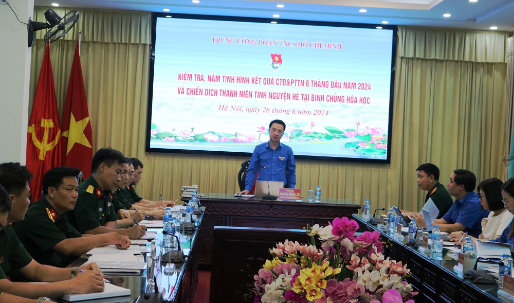 Tại buổi làm việc, Đại tá Nguyễn Huy Hùng - Phó Chủ nhiệm chính trị Binh chủng báo cáo kết quả công tác Đoàn, phong trào thanh niên 6 tháng đầu năm 2024. Theo đó, công tác Đoàn và phong trào thanh niên của Binh chủng luôn quán triệt và thực hiện nghiêm túc các Nghị quyết, Chỉ thị của tổ chức đảng các cấp, bám sát nhiệm vụ trọng tâm của từng cơ quan đơn vị; tổ chức hoạt động có nề nếp, đúng chức năng, có nhiều nội dung đổi mới, sáng tạo, hiệu quả phù hợp với tâm lý tuổi trẻ, thu hút đông đảo cán bộ, ĐVTN tham gia. Với sự đoàn kết, nỗ lực khắc phục khó khăn, sáng tạo không ngừng của cán bộ, đoàn viên toàn Binh chủng, công tác Đoàn và phong trào thanh niên đã hoàn thanh xuất sắc các nhiệm vụ được giao.