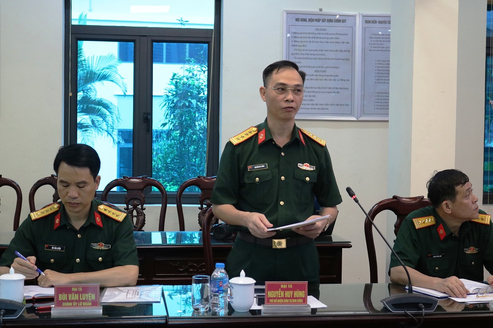 Đại tá Nguyễn Huy Hùng- Phó Chủ nhiệm chính trị Binh chủng báo cáo kết quả công tác Đoàn, phong trào thanh niên 6 tháng đầu năm 2024