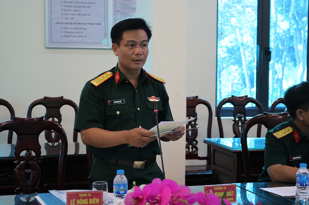 Trung tá Cao Minh Chất- Phó Chính ủy Lữ đoàn 86 báo cáo kết quả hoạt động tại cơ sở