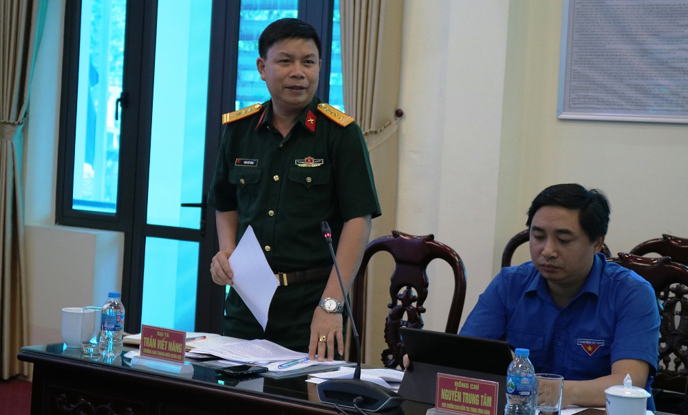 Đại tá Trần Viết Năng- Trưởng Ban thanh niên Quân đội phát biểu tại buổi làm việc