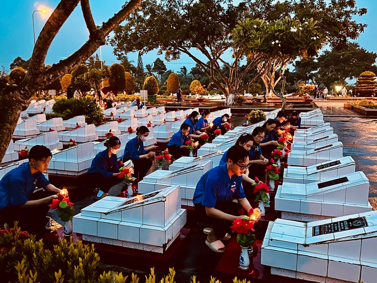 Gần 4.500 ngọn nến lung linh đã được thắp lên tại nghĩa trang liệt sĩ tỉnh Kiên Giang như những ngọn lửa nhiệt huyết của tuổi trẻ tri ân sự cống hiến, hy sinh của các thế hệ cha anh đã góp phần to lớn chọ sự nghiệp đấu tranh, giải phóng đất nước.