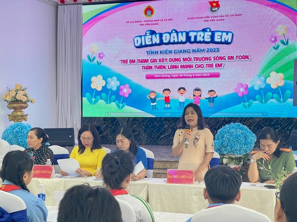 Tham dự diễn đàn có đồng chí Nguyễn Lưu Trung – Tỉnh uỷ viên, Phó Chủ tịch UBND tỉnh, Trưởng Ban chỉ đạo công tác bảo vệ trẻ em tỉnh Kiên Giang; Đồng chí Đặng Hồng Sơn – Tỉnh uỷ viên, Giám đốc Sở Lao động – Thương binh và Xã hội tỉnh; Đồng chí Lý Anh Thư – Đại biểu Quốc hội khoá XV, Phó Giám đốc Sở Lao động – Thương binh và Xã hội, Trưởng Ban tổ chức diễn đàn; đồng chí Thị Phương Hồng – Phó Bí thư Tỉnh đoàn, Chủ tịch Hội đồng Đội tỉnh, Phó trưởng Ban tổ chức diễn đàn; các đồng chí lãnh đạo các sở, ban ngành, đoàn thể cấp tỉnh và các huyện, thành phố cùng 120 em thiếu nhi tiêu biểu đại diện cho hơn 386 ngàn thiếu nhi trên địa bàn tỉnh cùng tham dự.