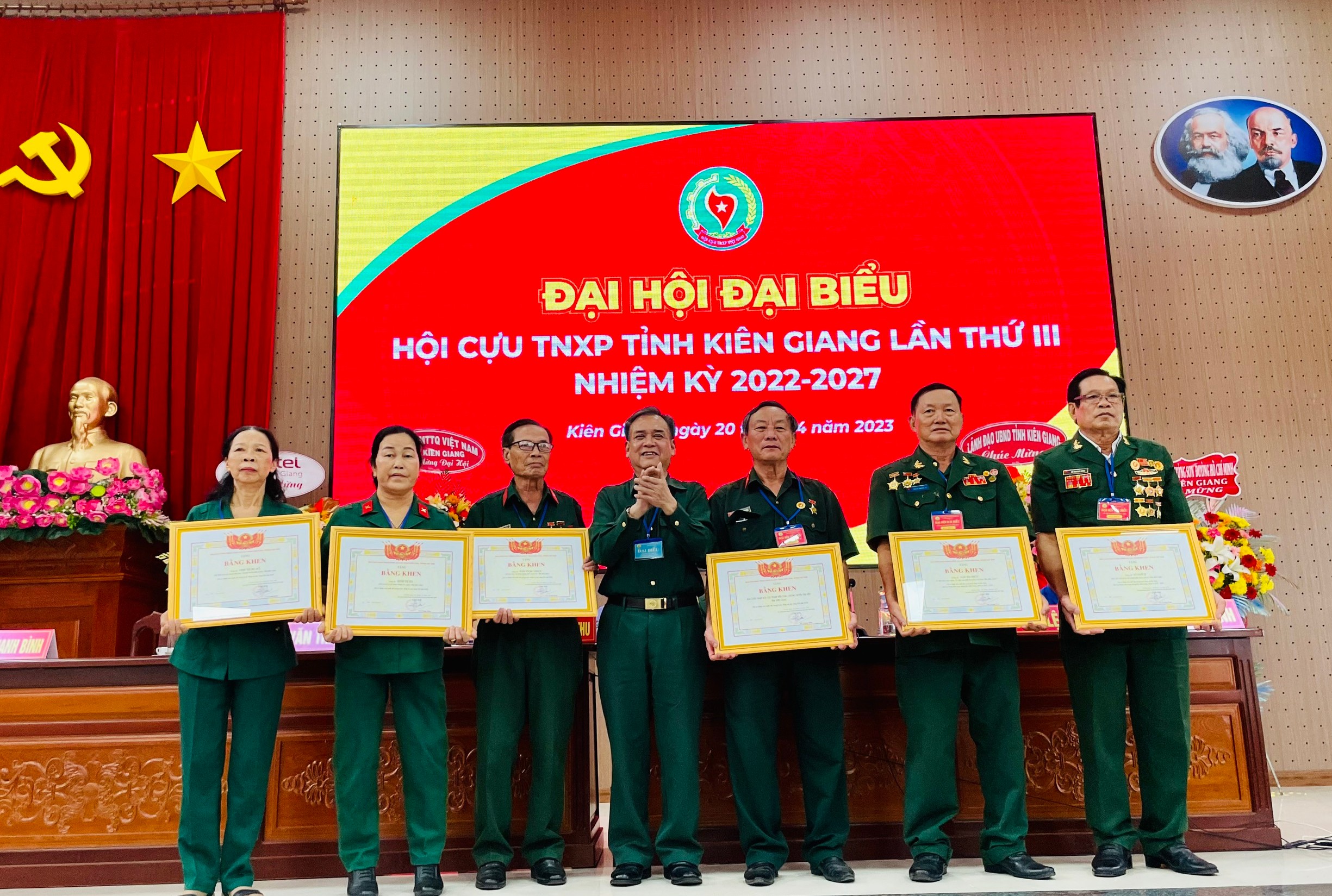 Dịp này, Trung ương Hội Cựu thanh niên xung phong Việt Nam tặng cờ truyền thống cho Đại hội đại biểu Hội Cựu thanh niên xung phong tỉnh Kiên Giang lần thứ III, nhiệm kỳ 2022-2027; tặng bằng khen cho 4 cá nhân có thành tích xuất sắc trong hoạt động và xây dựng Hội Cựu thanh niên xung phong tỉnh nhiệm kỳ 2017-2022. Hội Cựu thanh niên xung phong tỉnh tặng giấy khen cho 12 tập thể có thành tích xuất sắc công tác xây dựng và hoạt động Hội nhiệm kỳ 2017-2022… Ngoài ra, Hội Cựu Thanh niên xung phong tỉnh cũng tặng quà cho các đồng chí thôi không tham gia BCH Hội khóa III, nhiệm kỳ 2022 – 2027.