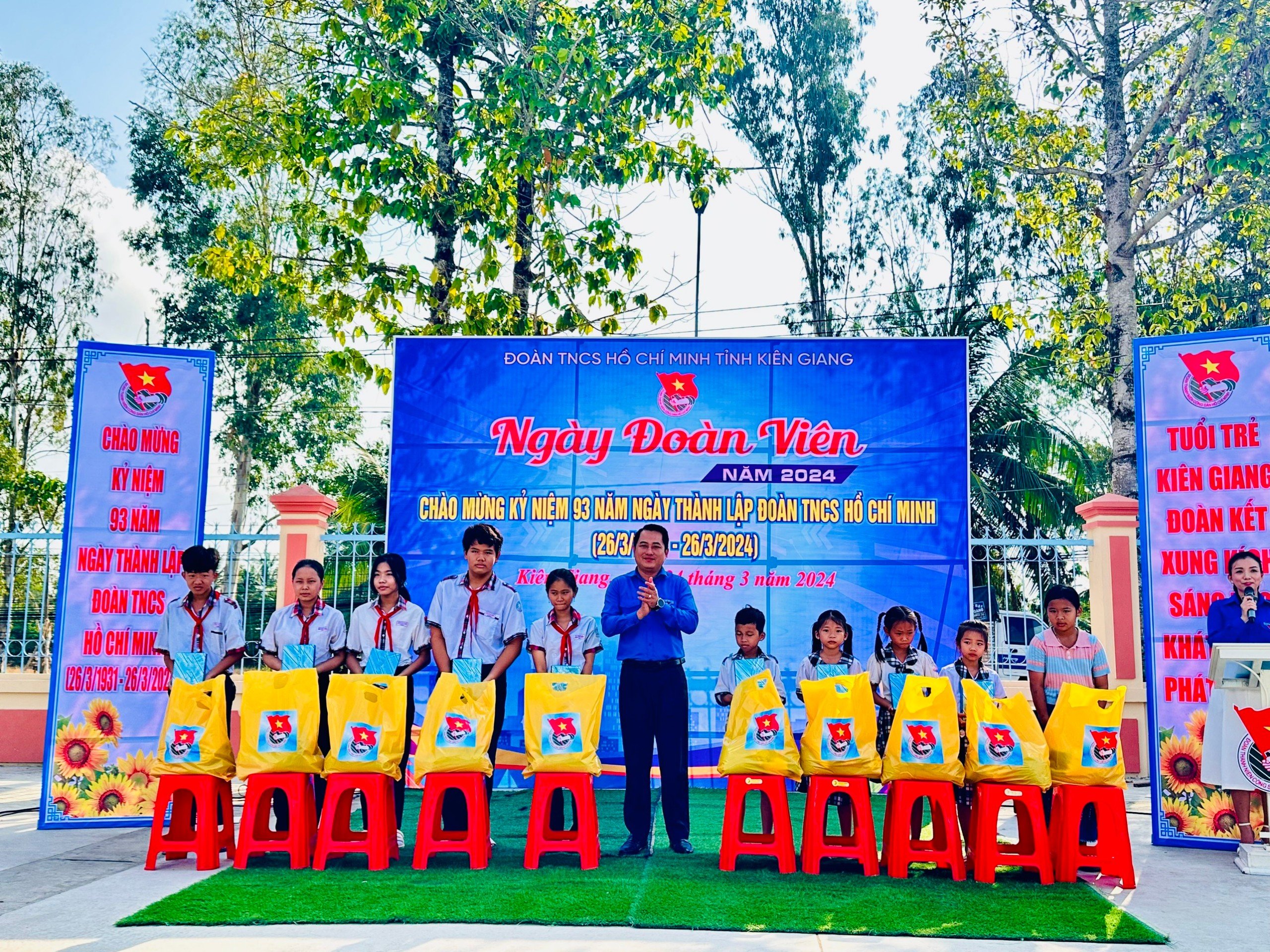 Ngày hội “Tiến bước lên Đoàn” tỉnh Kiên Giang năm 2024 được tổ chức với phần lễ và phần hội. Phần lễ gồm: Ôn lại truyền thống 93 năm vẻ vang của Đoàn Thanh niên Cộng sản Hồ Chí Minh; Kết nạp 54 đoàn viên mới, đây là những đội viên trưởng thành có thành tích xuất sắc trong học tập, tích cực tham gia các hoạt động của Đoàn - Đội của nhà trường; Trao tặng bản đồ Việt Nam hưởng ứng cuộc vận động “Tự hào một dải non sông” do Trung ương Đoàn phát động; Trao tặng Bằng khen của BCH Tỉnh đoàn cho Liên đội Trường TH -THCS Vàm Rầy với thành tích xuất sắc trong phong trào thi đua “Thực hiện 5 điều Bác Hồ dạy”; Tuyên dương 40 đội viên tiêu biểu, trong đó có 12 em của huyện Hòn Đất có thành tích xuất sắc trong học tập , rèn luyện và công tác Đội Thiếu nhi tiền phong Hồ Chí Minh; Trao tặng 06 suất học bổng cho các bạn học sinh trường TH&THCS Vàm Rầy, mỗi suất trị giá 500 ngàn đồng.