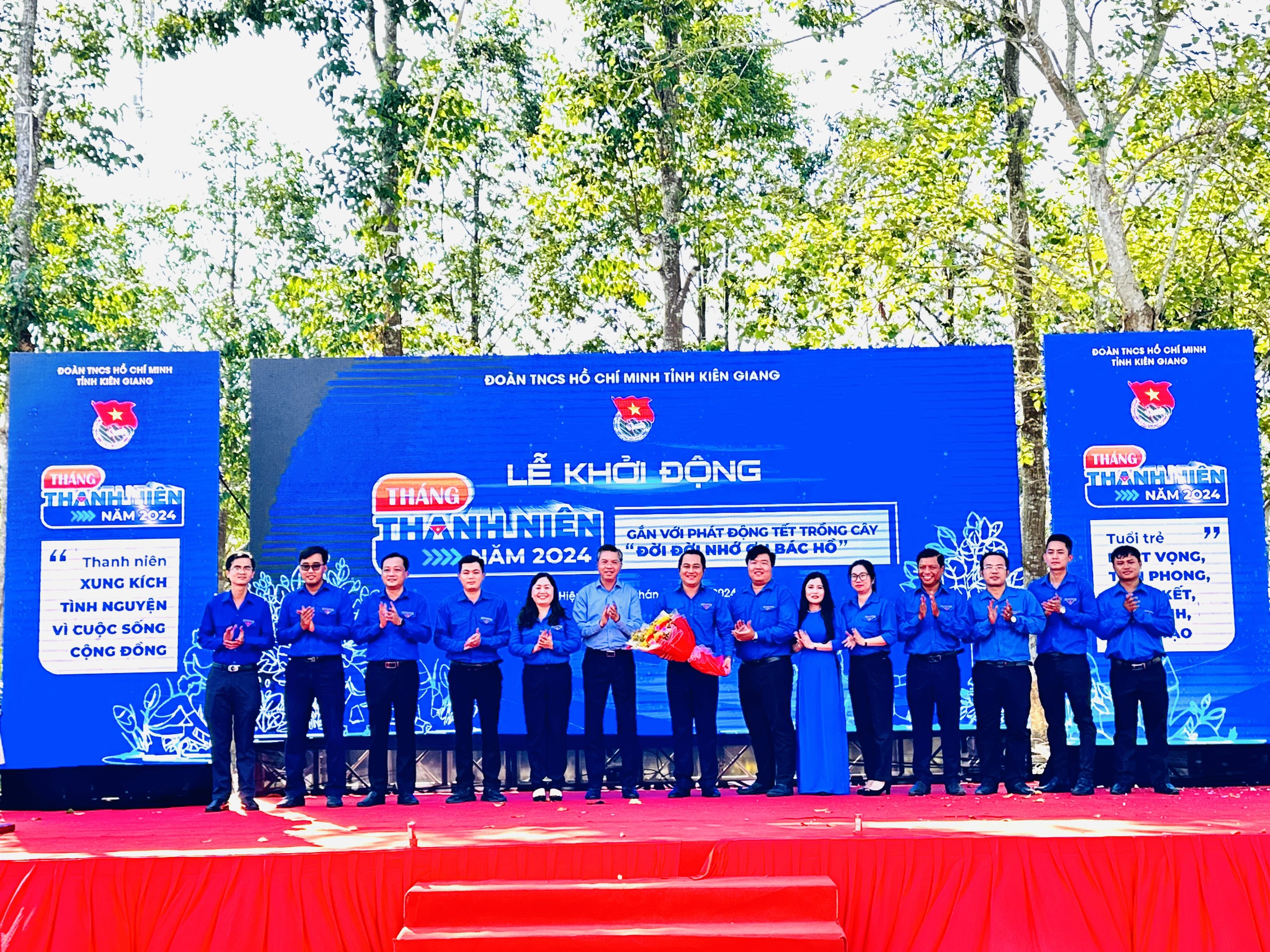 Đồng chí Nguyễn Lưu Trung – Tỉnh uỷ viên, Phó Chủ tịch UBND tỉnh Kiên Giang trao hoa chúc mừng Ban Chỉ đạo Tháng Thanh niên năm 2024