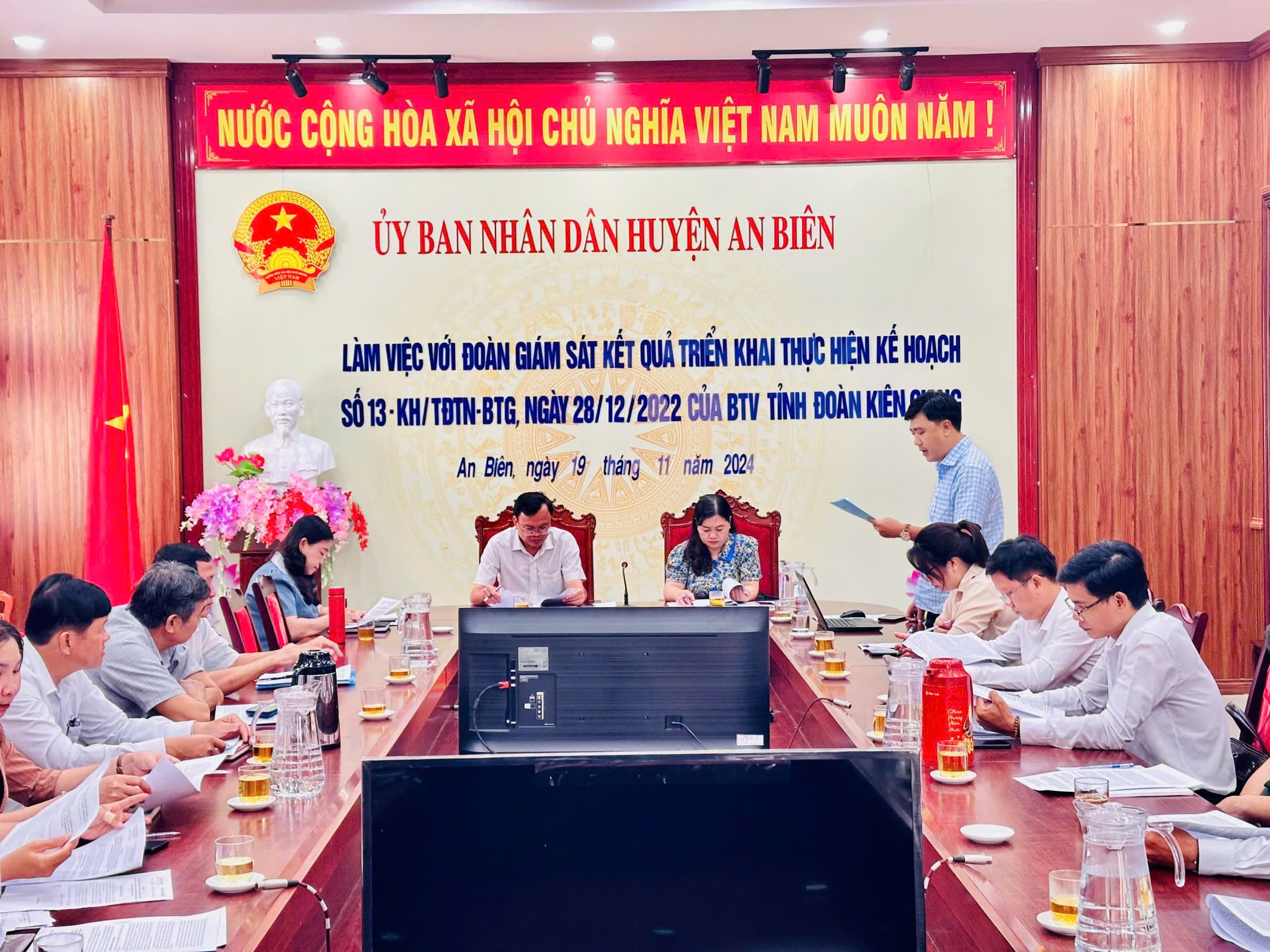 Ngày 19/11/2024, Đoàn giám sát do đồng chí Thị Phương Hồng, Phó Bí thư thường trực Tỉnh đoàn, Chủ tịch Hội LHTN Việt Nam tỉnh đã có buổi giám sát đối với UBND huyện An Biên và xã Nam Thái nội dung về kết quả triển khai thực hiện Kế hoạch số 13-KH/TĐTN-BTG ngày 28/12/2022 của Ban Thường vụ Tỉnh đoàn về việc thực hiện chương trình “Giáo dục lý tưởng cách mạng, đạo đức, lối sống văn hoá cho thanh thiếu nhi trên không gian mạng giai đoạn 2022 – 2030 trên địa bàn huyện An Biên.