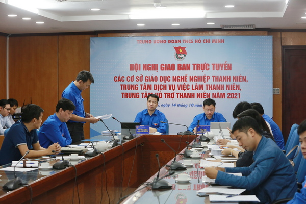 Sáng ngày 14/10 tại Hà Nội, Trung ương Đoàn TNCS Hồ Chí Minh tổ chức Hội nghị giao ban trực tuyến các cơ sở giáo dục nghề nghiệp thanh niên, trung tâm dịch vụ việc làm thanh niên, trung tâm hỗ trợ thanh niên năm 2021. Đồng chí Ngô Văn Cương, Bí thư TƯ Đoàn; đồng chí Trần Hữu, Trưởng Ban Thanh niên công nhân và Đô thị TƯ Đoàn đồng chủ trì hội nghị.