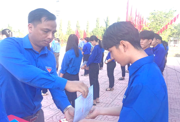 Đồng chí Xiêng Thanh Phúc - Bí thư Tỉnh đoàn trao quyết định kết nạp đoàn viên mới |