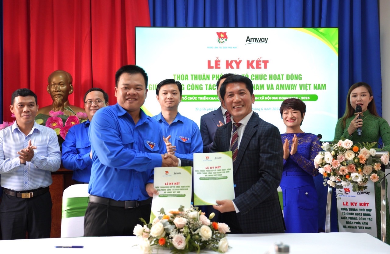 Phát biểu tại Lễ ký kết, đồng chí Nguyễn Hải Nam - Uỷ viên Ban Chấp hành, Phó Chánh Văn phòng Trung ương Đoàn, Trưởng phòng Công tác Đoàn phía Nam chia sẻ, những hoạt động nêu trên vừa tham gia, góp sức vào các hoạt động cộng đồng, an sinh xã hội của các cấp bộ Đoàn, vừa là tiền đề để Phòng Công tác Đoàn phía Nam và công ty TNHH Amway tìm hiểu, nâng cao sự hiểu biết lẫn nhau và tiếp tục cùng nhau nghiên cứu, thảo luận để xây dựng và mở rộng thêm nhiều hoạt động an sinh xã hội hướng đến cộng đồng, góp sức chung tay cùng bảo vệ môi trường, hỗ trợ thêm nhiều các hoàn cảnh khó khăn.
