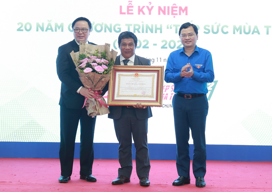 Đồng chí Nguyễn Anh Tuấn, Ủy viên BCH TƯ Đảng, Bí thư thứ nhất TƯ Đoàn, đồng chí Hoàng Bình Quân, Nguyên Ủy viên BCH TƯ Đảng, Nguyên Trưởng ban Đối ngoại TƯ trao Huân chương Lao động hạng Ba cho ông Võ Văn Ba - Trưởng ban Thanh niên – Giáo dục, Báo Thanh niên.