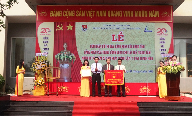 Trung tâm DVVLTN tỉnh vinh dự đón nhận cờ thi đua của UBND tỉnh, bằng khen của Chủ tịch UBND tỉnh và nhận bằng khen của Trung ương Đoàn vì đã có thành tích xuất sắc trong công tác đào tạo, giới thiệu việc làm cho thanh niên.