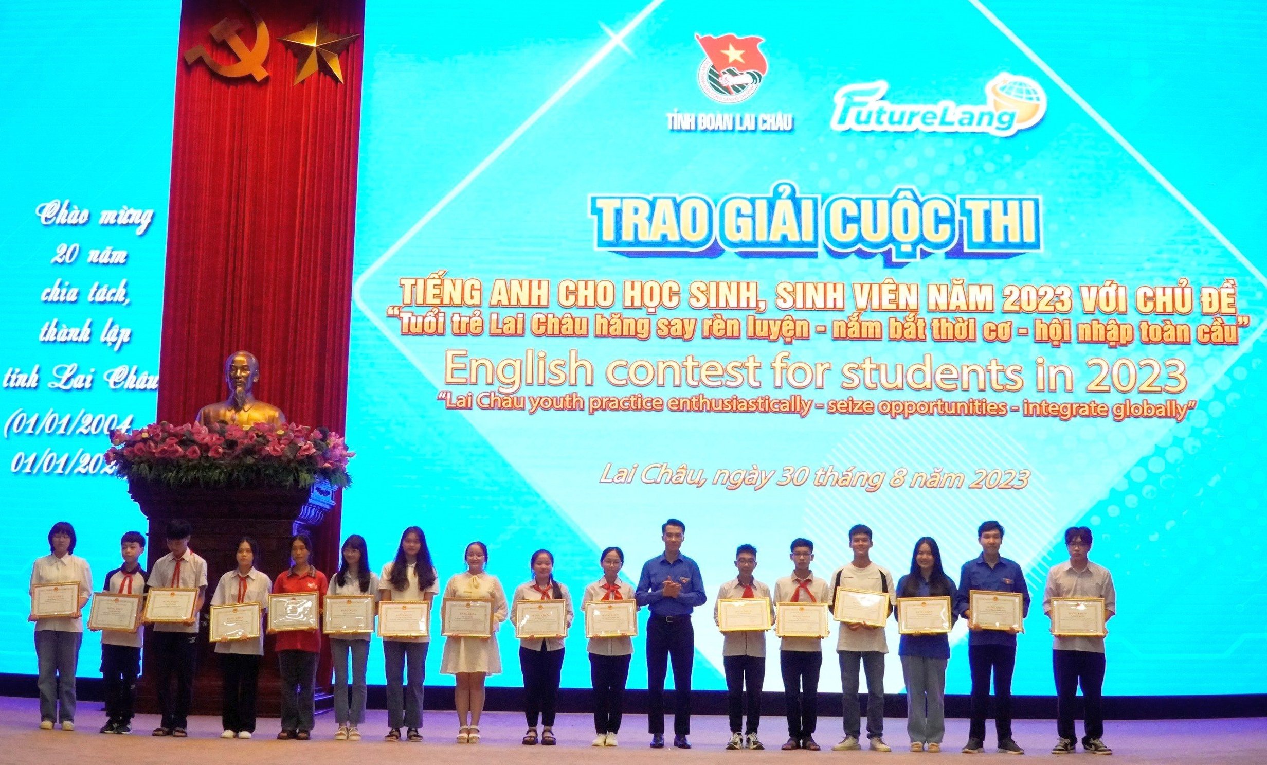 Bế mạc Cuộc thi, Ban Thường vụ Tỉnh đoàn đã quyết định khen thưởng cho 16 cá nhân lọt vào vòng Chung kết Cuộc thi Tiếng Anh dành cho học sinh, sinh viên năm 2023; Ban Tổ chức Cuộc thi đã trao 01 Giải Nhất, 01 Giải Nhì, 02 Giải Ba, 04 Giải Khuyến khích, 01 Giải Triển vọng, 01 Giải thuyết trình cho các thí sinh./.